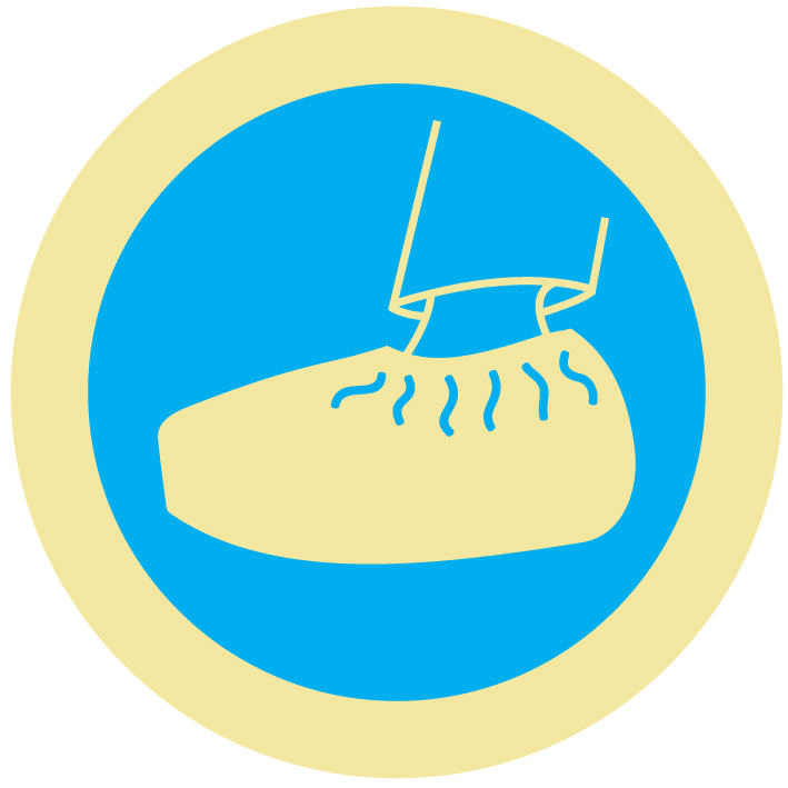 Etiqueta OBRIGATÓRIO USO PROTETORES DE CALÇADO, para identificação e sinalização da necessidade de cumprimento de condições de segurança