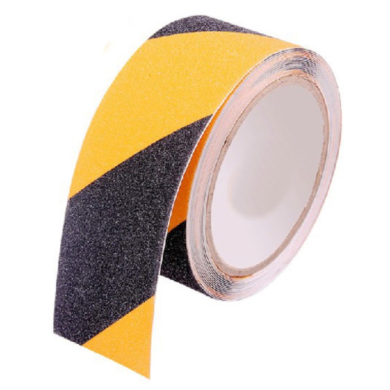 Fita anti-derrapante, com partículas abrasivas de grande resistência, com adesivo duradouro, aplicações em tráfego intenso de peões ou veículos, pavimentos, escadas rampas, plataformas, andaimes