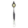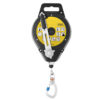 Retrátil com recuperador manual é um dispositivo de elevação de resgate na vertical, mosquetão de engate rápido em duralumínio, com indicador de queda, cabo de aço de 15 m