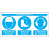 Sinal composto de OBRIGAÇÃO DE USO DE ÓCULOS, BOTAS E CAPACETE DE PROTEÇÃO, para identificação e sinalização da necessidade de uso de equipamentos de proteção