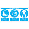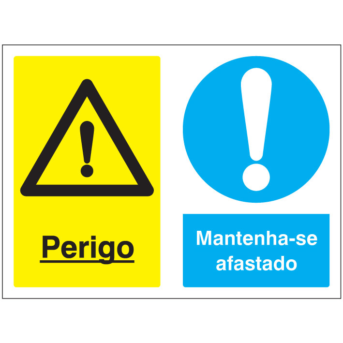 Sinal composto de PERIGO DE PERIGOS VÁRIOS E MANTENHA-SE AFASTADO, para sinalização e identificação de advertência e perigo e para identificação e sinalização da necessidade de uso de equipamentos de proteção