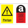 Sinal composto de PERIGO DE CENTRAL TÉRMICA E PROIBIDA A ENTRADA, ACESSO RESERVADO A PESSOAL ESPECIALIZADO, para sinalização e identificação de advertência e perigo e identificação e sinalização comportamentos de risco