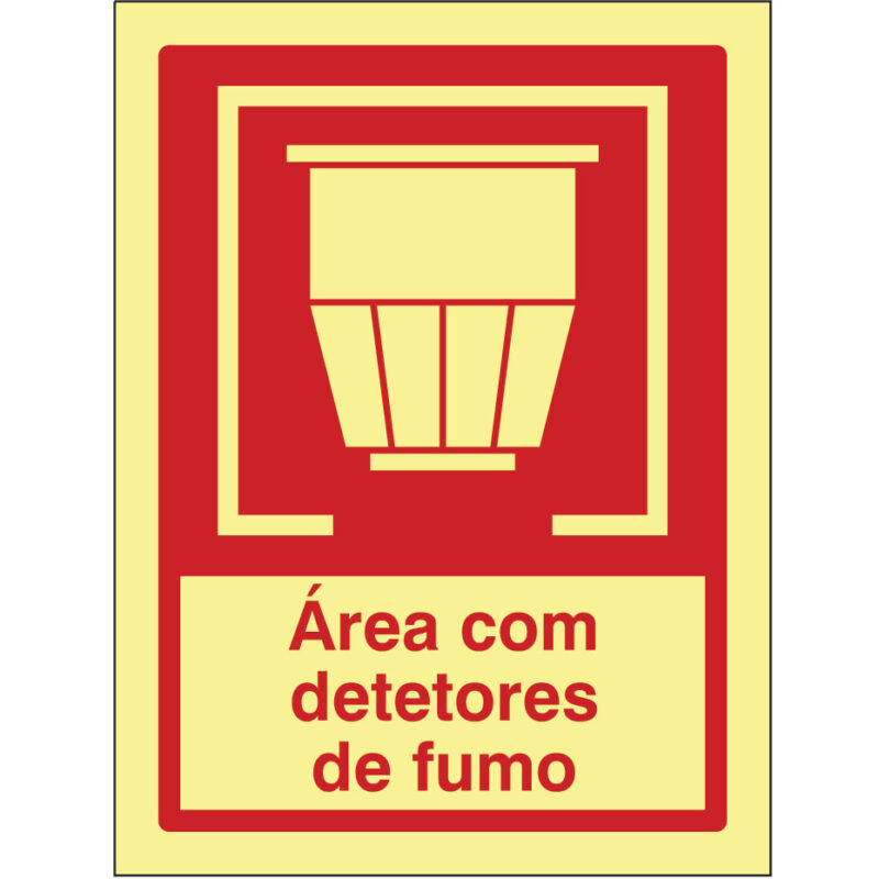 Sinal de ÁREA COM DETETORES DE FUMO, para sinalização e identificação de sistemas de alarme e equipamentos de extinção de incêndios