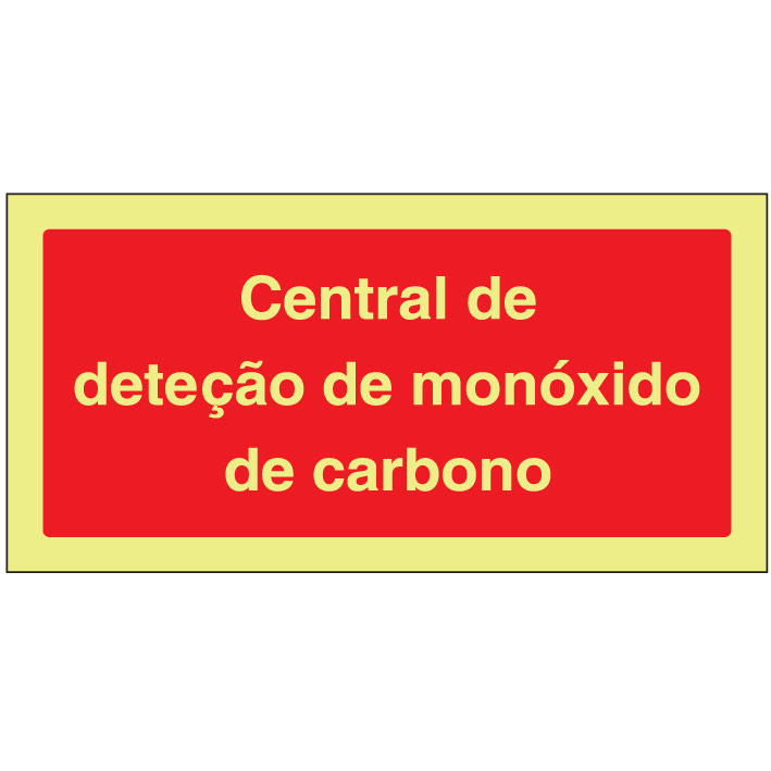 Sinal de CENTRAL DE DETÇÃO DE MONÓXIDO DE CARBONO, para sinalização e identificação de sistemas de alarme e equipamentos de extinção de incêndios