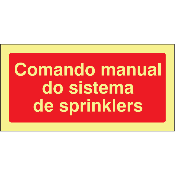 Sinal de COMANDO MANUAL DO SISTEMA DE SPRINKLER, para sinalização e identificação de sistemas de alarme e equipamentos de extinção de incêndios