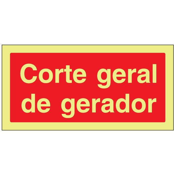 Sinal de CORTE GERAL DE GERADOR, para sinalização e identificação de sistemas de alarme e equipamentos de extinção de incêndios