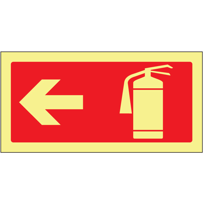 Sinal de EXTINTOR À ESQUERDA, para sinalização e identificação de sistemas de alarme e equipamentos de extinção de incêndios