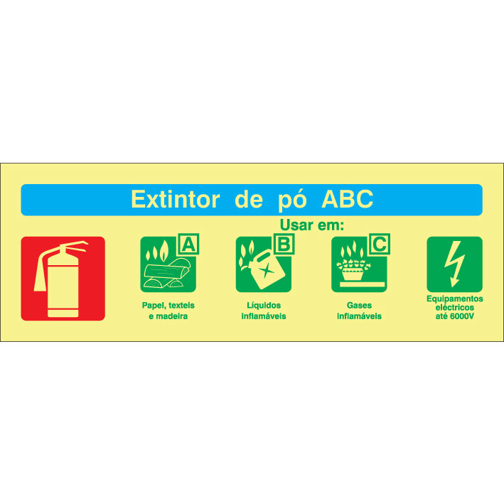 Sinal de EXTINTOR DE ABC, para sinalização e identificação de sistemas de alarme e equipamentos de extinção de incêndios