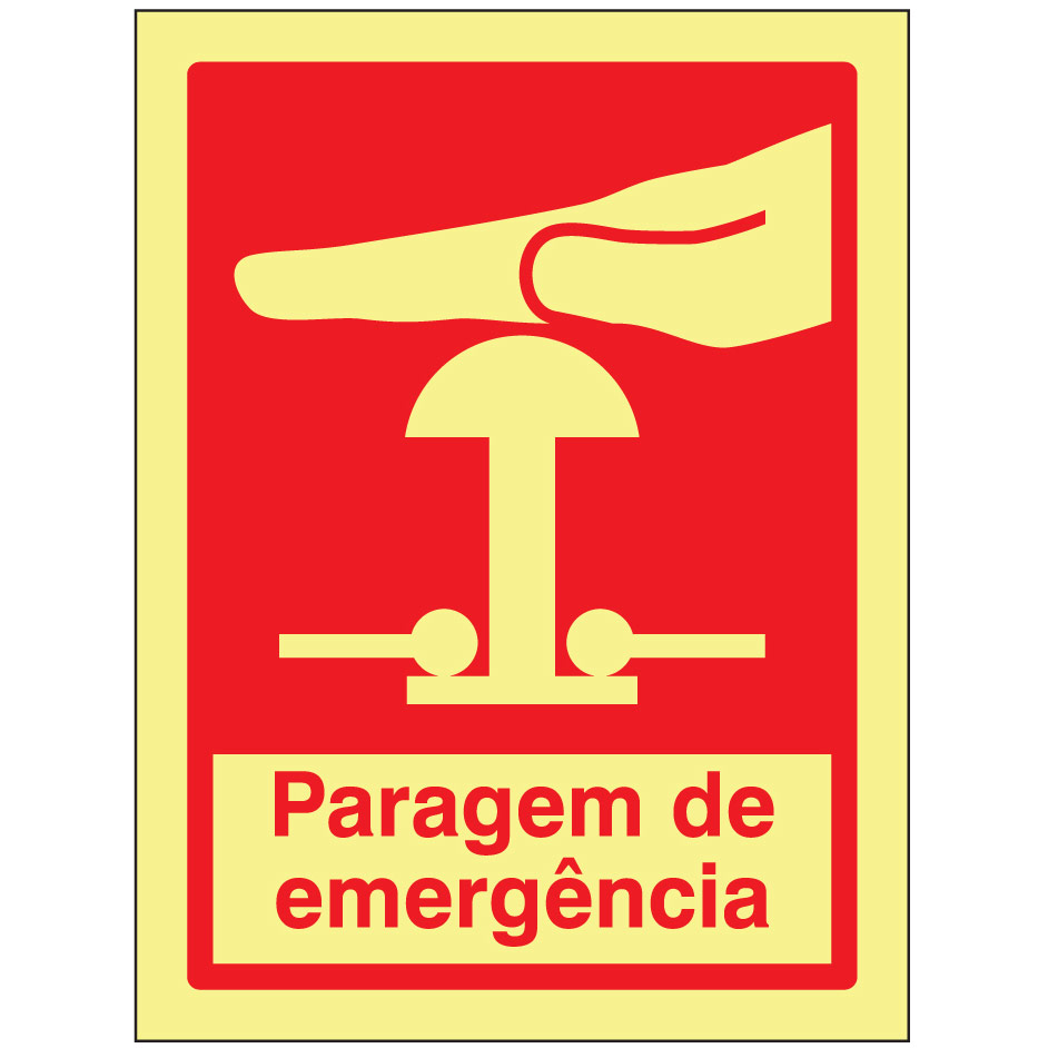 Sinal de PARAGEM DE EMERGÊNCIA, para sinalização e identificação de sistemas de alarme e equipamentos de extinção de incêndios