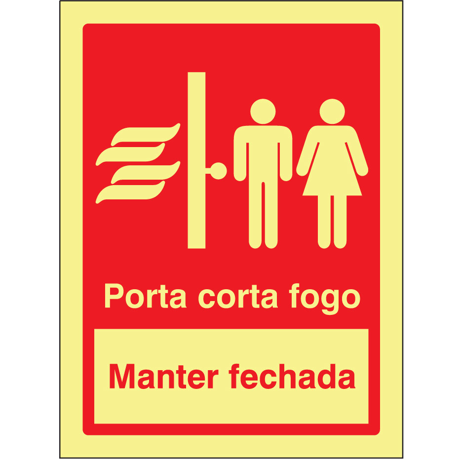 Sinal de PORTA CORTA- FOGO / MANTER FECHADA, para sinalização e identificação de sistemas de alarme e equipamentos de extinção de incêndios