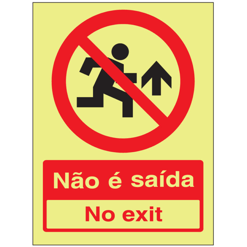 Sinal de NÃO É SAÍDA / NO EXIT, para sinalização e identificação de vias de evacuação