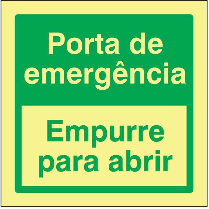 Sinal de PORTA DE EMERGÊNCIA / EMPURRE PARA ABRIR, para sinalização e identificação de equipamentos