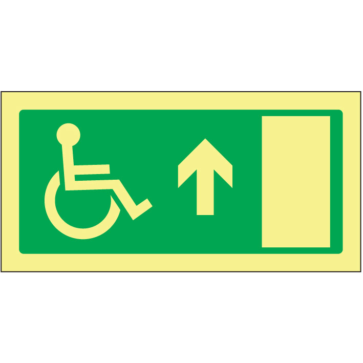 SINAL DE EMERGÊNCIA – PORTA DE SAÍDA A PARA CIMA PARA PESSOAS COM DEFICIÊNCIA OU MOBILIDADE REDUZIDA (E166)
