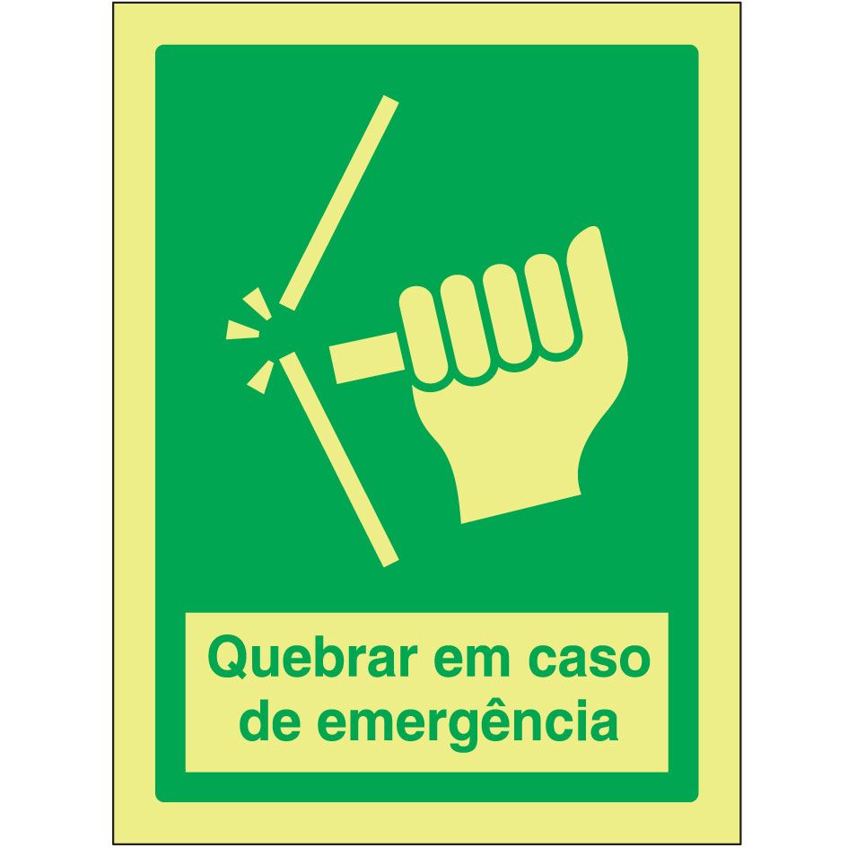 Sinal de VIA DE QUEBRAR EM CASO DE EMERGÊNCIA, para sinalização e identificação de equipamentos