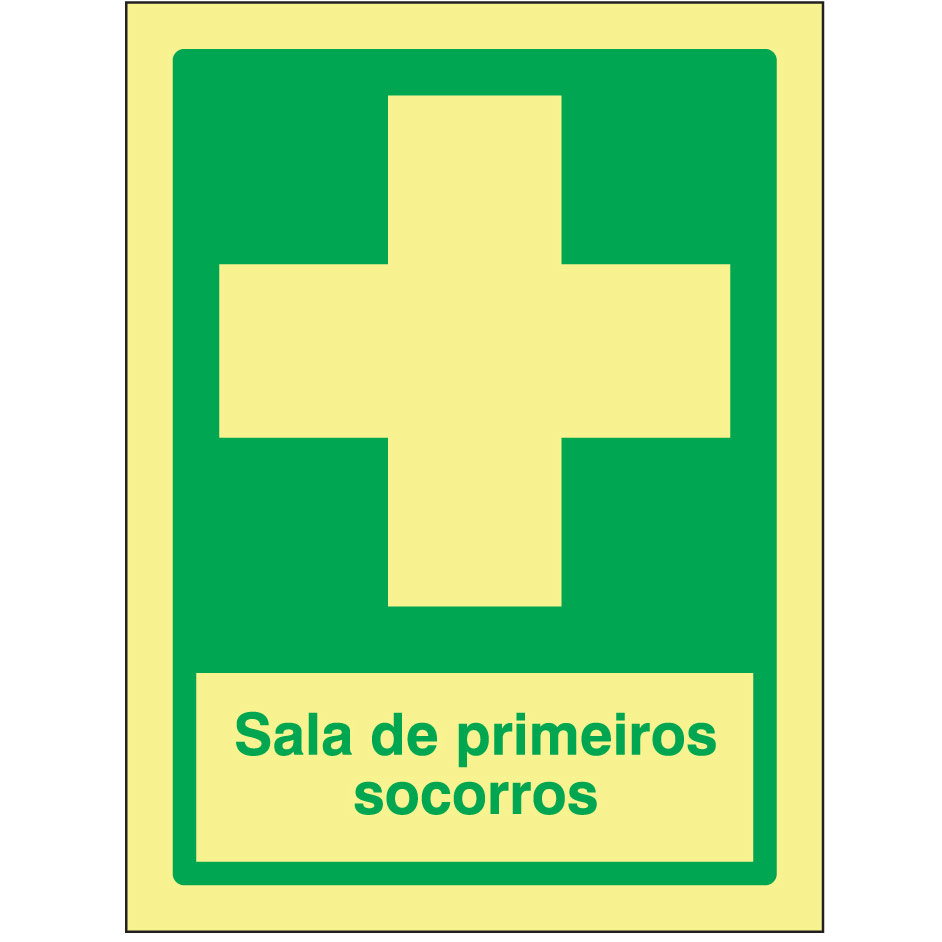 Sinal de SALA DE PRIMEIROS SOCORROS, para sinalização e identificação de equipamentos