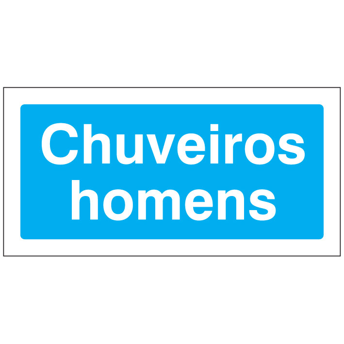 Sinal de INFORMAÇÃO DE CHUVEIROS HOMENS, para identificação e sinalização de espaços