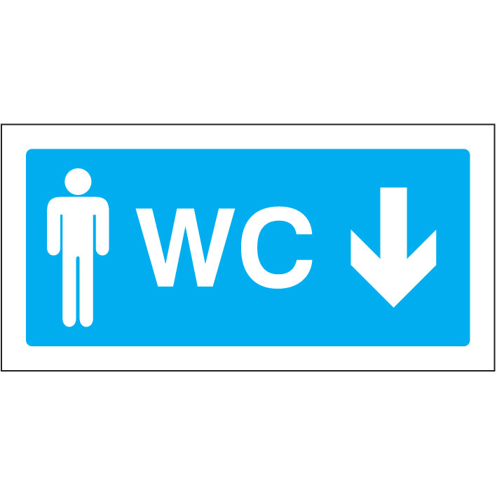 Sinal de INFORMAÇÃO DE INSTALAÇÕES SANITÁRIAS MASCULINAS EM BAIXO, para identificação e sinalização de espaços