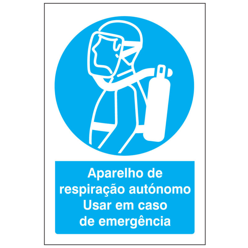 Sinal de OBRIGAÇÃO DE USO DE APARELHO DE RESPIRAÇÃO AUTÓNOMA DE PROTEÇÃO, para identificação e sinalização da necessidade de uso de equipamentos de proteção