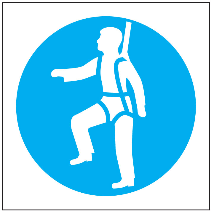 Sinal de OBRIGAÇÃO DE USO DE ARNÊS ANTI-QUEDA, para identificação e sinalização da necessidade de uso de equipamentos de proteção