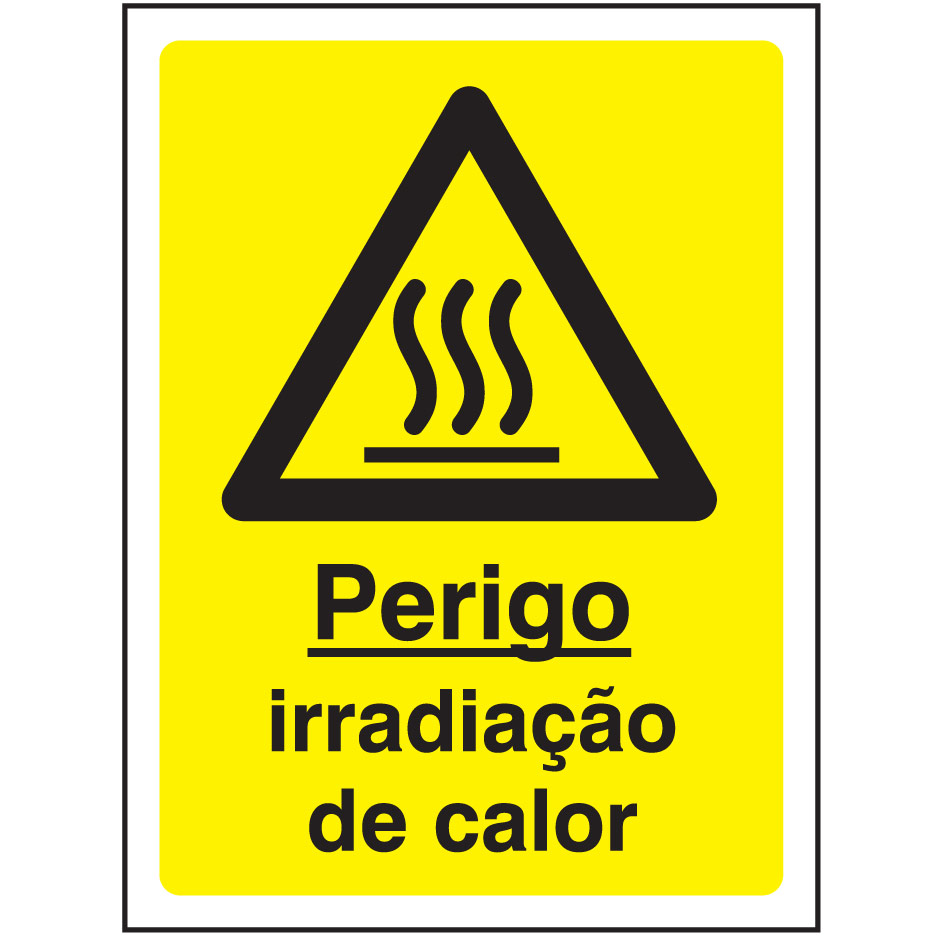Sinal de PERIGO DE IRRADIAÇÃO DE CALOR, para sinalização e identificação de advertência e perigo
