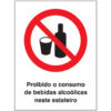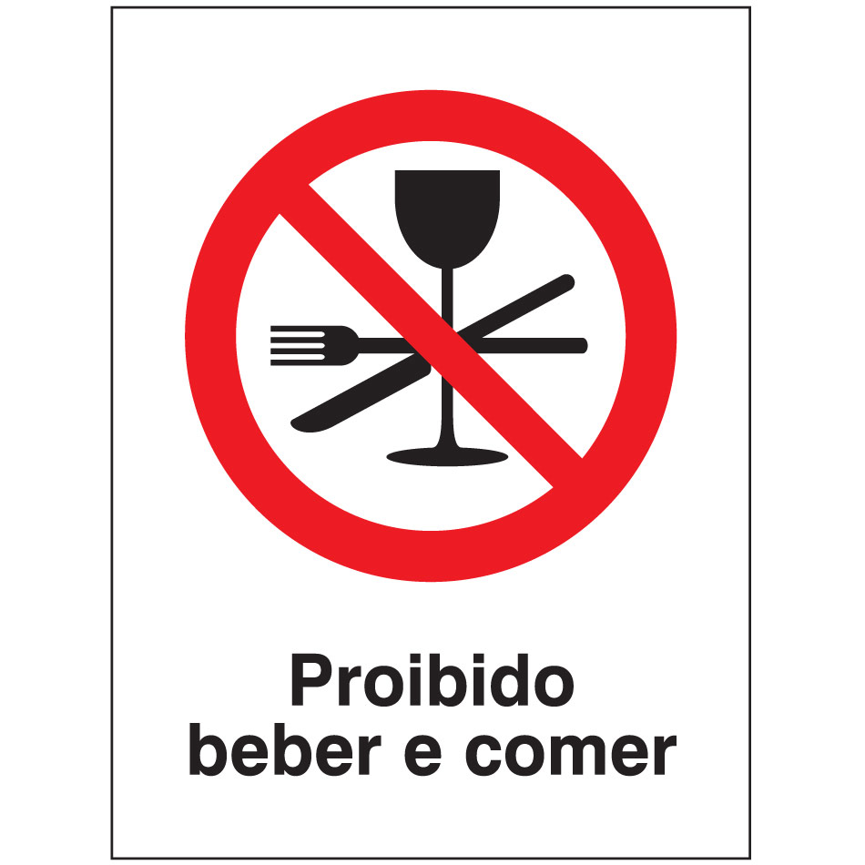 Sinal de PROIBIÇÃO DE BEBER E COMER, para identificação e sinalização comportamentos de risco
