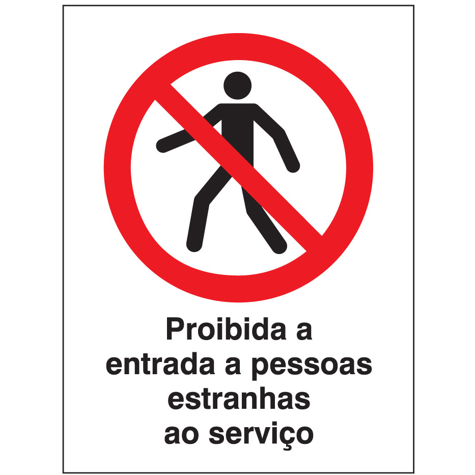 Sinal de PROIBIÇÃO DE ENTRADA A PESSOAS ESTRANHAS AO SERVIÇO, para identificação e sinalização comportamentos de risco