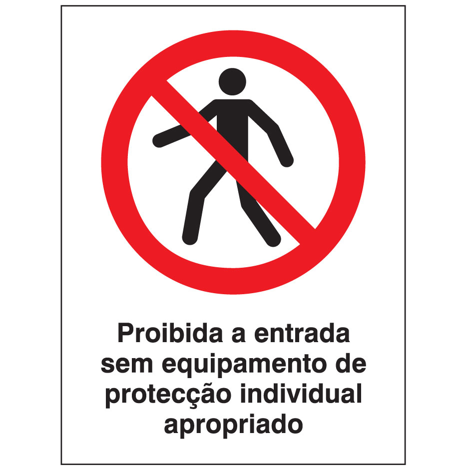 Sinal de PROIBIÇÃO DE ENTRADA SEM EQUIPAMENTO DE PROTEÇÃO INDIVIDUAL APROPRIADO, para identificação e sinalização comportamentos de risco